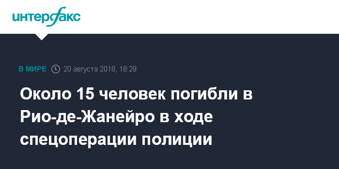 Москва. 20 августа. INTERFAX.RU - В Бразилии в ходе операции полиции по задержанию членов организованной преступной группировки в Рио-де-Жанейро погибли по меньшей мере 14 человек, сообщает в понедельник газета Folha de S.Paulo.