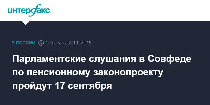 Парламентские слушания в Совфеде по пенсионному законопроекту пройдут 17 сентября