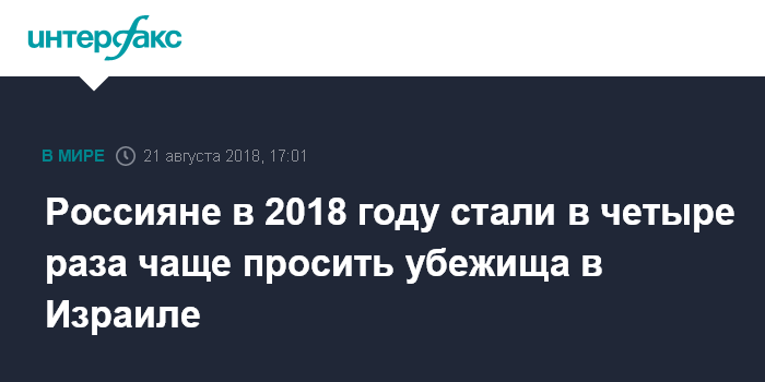 Москва. 21 августа. INTERFAX.RU - Число запросов россиян на убежище в Израиле выросло в четыре раза по сравнению с 2017 годом, сообщает во вторник газета Haaretz.