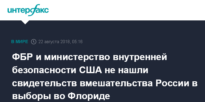 ФБР и министерство внутренней безопасности США не нашли свидетельств вмешательства России в выборы во Флориде