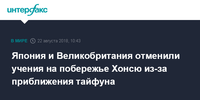 Япония и Великобритания отменили учения на побережье Хонсю из-за приближения тайфуна