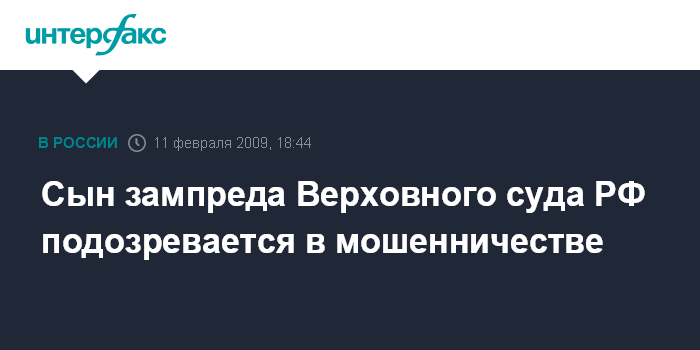 Сын зампреда Верховного суда РФ подозревается в мошенничестве