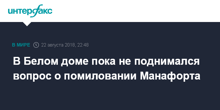 Москва. 22 августа. INTERFAX.RU - Представитель Белого дома Сара Сандерс в среду заявила, что обвинительный вердикт в отношении бывшего главы штаба президента Пола Манафорта не имеет к Дональду Трампу никакого отношения.
