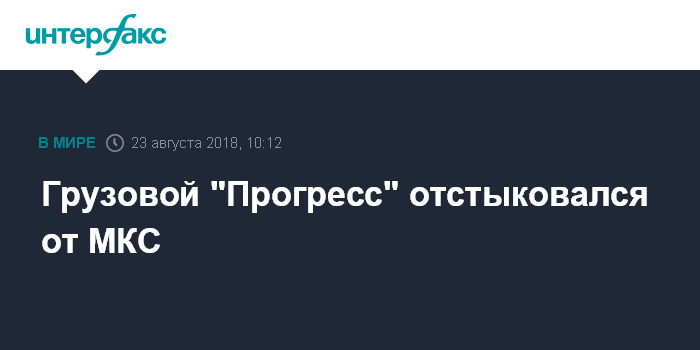Москва. 23 августа. INTERFAX.RU - Транспортный грузовой корабль "Прогресс МС-08" отстыковался от российского сегмента МКС для последующего затопления, сообщили в четверг в пресс-службе Центрального научно-исследовательского института машиностроения (ЦНИИмаш).