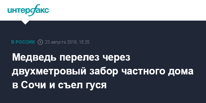 "На днях в Адлерском районе Сочи медведь перелез через двухметровый забор на территорию подворья жилого дома и съел гуся", - рассказал собеседник агентства.