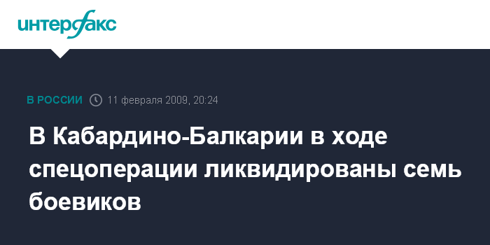 Нальчик. 11 февраля. INTERFAX.RU - Семь боевиков уничтожены в ходе спецоперации в Черекском районе Кабардино-Балкарии.