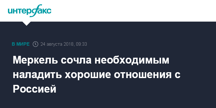 Москва. 24 августа. INTERFAX.RU - Налаживание хороших отношений с Россией является важным для Германии, заявила немецкий канцлер Ангела Меркель.