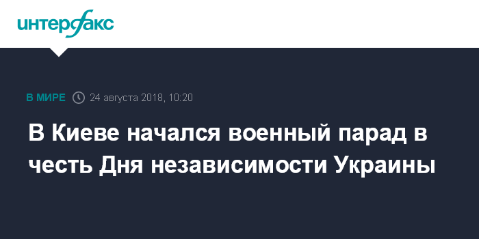 Москва. 24 августа. INTERFAX.RU - Военный парад в центре Киева, приуроченный к 27-летию независимости Украины и столетию возрождения украинской государственности, проходит на Крещатике в Киеве.