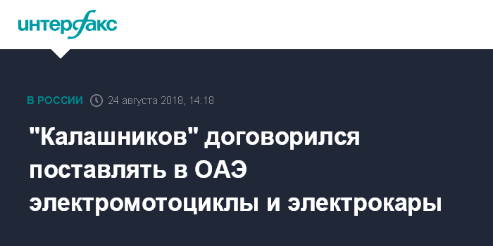 "Соглашение предполагает первые поставки электрических транспортных средств производства АО "Концерн "Калашников" на экспорт", - сказал собеседник агенства, уточнив, что речь идет о мотоциклах и электрокарах.