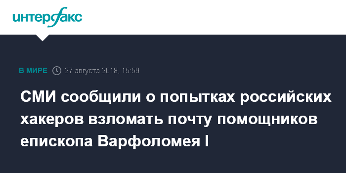 СМИ сообщили о попытках российских хакеров взломать почту помощников епископа Варфоломея I