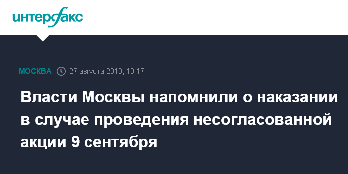 Власти Москвы напомнили о наказании в случае проведения несогласованной акции 9 сентября