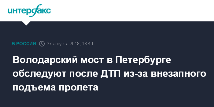 Как сообщалось, 25 августа в 20:42 при неустановленных обстоятельствах произошло самопроизвольное поднятие панели разводной части моста имени Володарского со стороны улицы Народной, что привело к дорожно-транспортному происшествию, в результате которого водители автомобилей "Лада Калина" и "Ниссан Кашкай", а также пассажир маршрутки получили телесные повреждения.