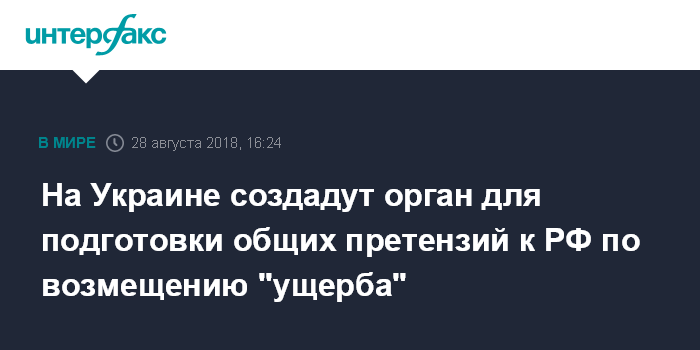 Москва. 28 августа. INTERFAX.RU - Президент Петр Порошенко требует ускорить создание координационного органа, который займется составлением общей претензии Украины к России для возмещения причиненного ущерба.