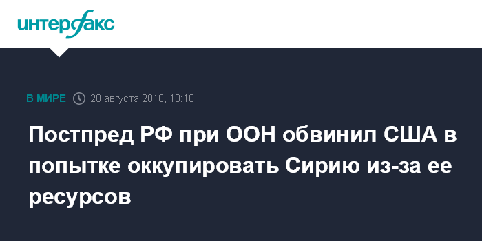 Москва. 28 августа. INTERFAX.RU - Международная коалиция во главе с США пытается закрепиться в Сирии и получить контроль над ресурсами страны, заявил постпред РФ при ООН Василий Небензя.