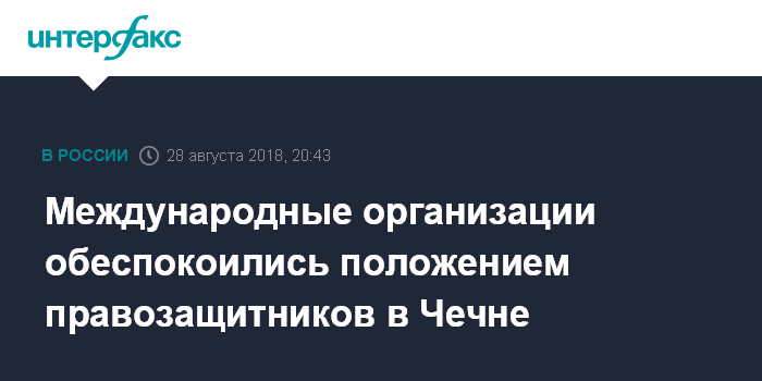 Москва. 28 августа. INTERFAX.RU - Международные организации Human Rights Watch, Amnesty International и Front Line Defenders просят президента РФ Владимира Путина не допустить противоправных действий в отношении правозащитников в Чечне со стороны главы республики Рамзана Кадырова. В Грозном обвинения категорически отвергли.