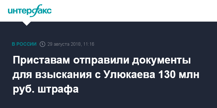 Москва. 29 августа. INTERFAX.RU - Замоскворецкий суд Москвы направил столичному управлению Федеральной службы судебных приставов исполнительный лист на взыскание с бывшего министра экономического развития Алексея Улюкаева, осужденного за получение взятки, штрафа в размере 130 млн рублей.