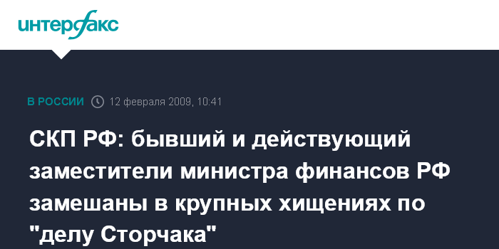 СКП РФ: бывший и действующий заместители министра финансов РФ замешаны в крупных хищениях по "делу Сторчака"