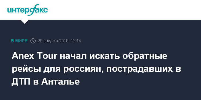 Anex Tour начал искать обратные рейсы для россиян, пострадавших в ДТП в Анталье