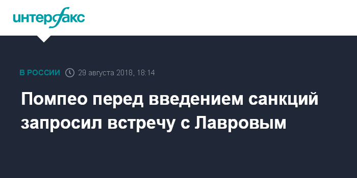 "Американские и европейские дипломаты сообщили, что для урегулирования трудностей в связи с вопросом санкций, Помпео 10 августа во время телефонного разговора с министром иностранных дел Сергеем Лавровым попросил о встрече (которая прошла бы - ИФ) до того, как Соединенные Штаты предпримут действия. Помпео подчеркнул, что он просит о встрече по указанию президента Соединенных Штатов", - пишет газета.