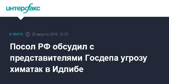 Посол РФ обсудил с представителями Госдепа угрозу химатак в Идлибе