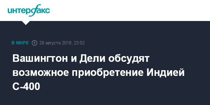 При этом он не уточнил, откажется ли правительство США от возможных санкций, которые будут применяться в соответствии с законом о санкциях CAATSA (Countering America's Adversaries Through Sanctions Act - "Акт о противодействии противникам Америки посредством санкций"), если Индия все же приобретет российские ЗРС.