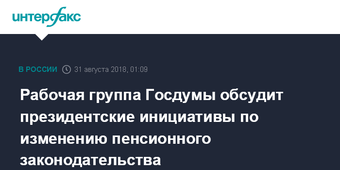 В свою очередь первый замглавы фракции "Единая Россия" Андрей Исаев сообщал, что рабочая группа Госдумы по доработке пенсионного законопроекта на заседании в пятницу обсудит оформление предложений президента РФ Владимира Путина в конкретные поправки.