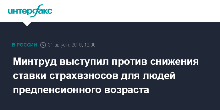 Минтруд выступил против снижения ставки страхвзносов для людей предпенсионного возраста