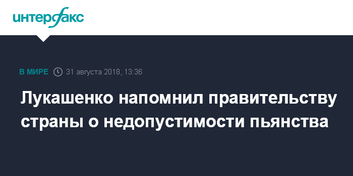 Москва. 31 августа. INTERFAX.RU - Президент Белоруссии Александр Лукашенко назначил нескольких новых министров и анонсировал дальнейшие перестановки в кабмине. Он заявил, что одна из причин обновления правительства - пьянство.