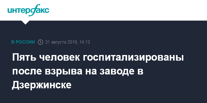 Москва. 31 августа. INTERFAX.RU - Пять человек пострадали в результате хлопка на заводе имени Свердлова в Дзержинске Нижегородской области, сообщил агентству "Интерфакс" руководитель пресс-службы Приволжского исследовательского медицинского университета Алексей Никонов.