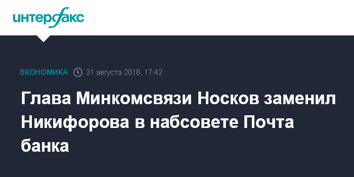 Глава Минкомсвязи Носков заменил Никифорова в набсовете Почта банка
