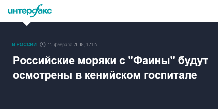 Российские моряки с "Фаины" будут осмотрены в кенийском госпитале