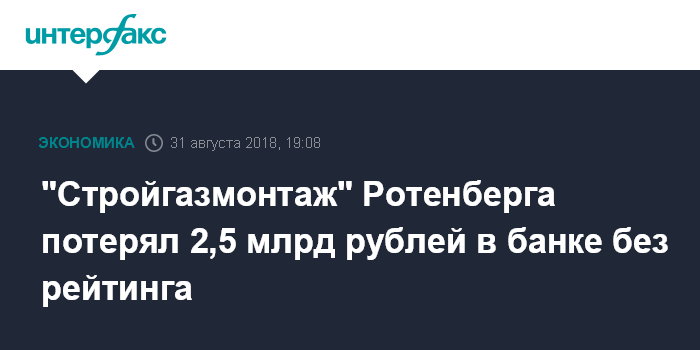 Москва. 31 августа. INTERFAX.RU - "Стройгазмонтаж" (СГМ) Аркадия Ротенберга в 2017 году потерял деньги в одном из лопнувших банков, следует из сообщения рейтингового агентства "Эксперт РА".