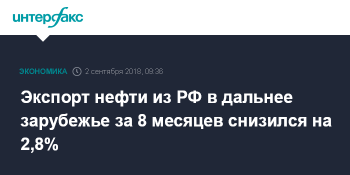 Экспорт нефти из РФ в дальнее зарубежье за 8 месяцев снизился на 2,8%
