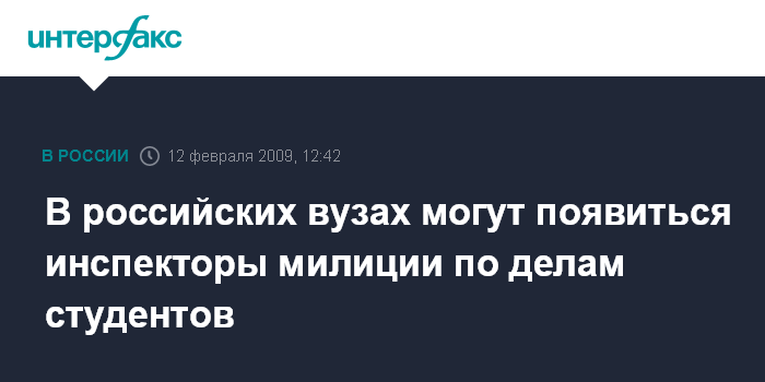 Москва. 12 февраля. INTERFAX.RU - МВД России планирует закрепить за вузами инспекторов милиции в связи с невыполнением в должной степени воспитания учащихся преподавателями.