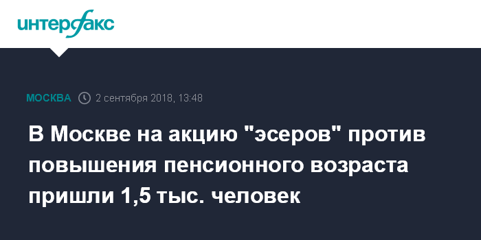 В Москве на акцию "эсеров" против повышения пенсионного возраста пришли 1,5 тыс. человек