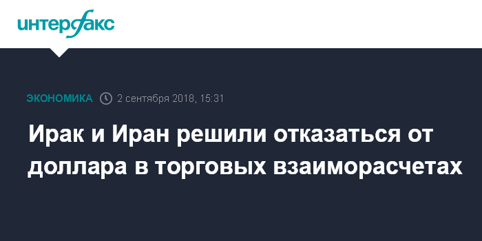 "Американский доллар исключен из списка валют, используемых Ираном и Ираком в их торговых расчетах. Они будут использовать иранский риал, евро и иракский динар в финансовых расчетах", - сказал чиновник.