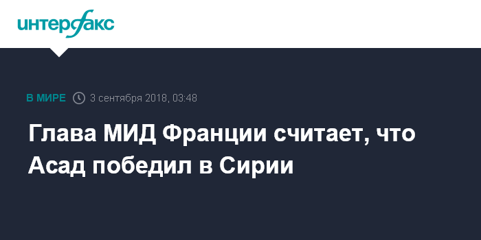 Москва. 3 сентября. INTERFAX.RU - Сирийский президент Башар Асад одержал победу в гражданском конфликте в этой в стране, но пока не добился мира, заявил министр иностранных дел Франции Жан-Ив ле Дриан.