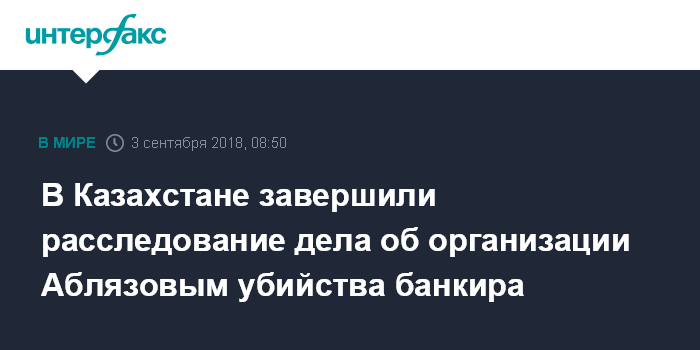 Москва. 3 сентября. INTERFAX.RU - Генпрокуратура Казахстана сообщила о завершении досудебного расследования в отношении беглого банкира Мухтара Аблязова по подозрению в организации умышленного убийства главы АО "БанкТуранАлем" Ержана Татишева в 2004 году.