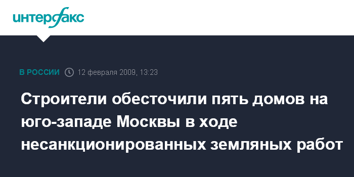Москва. 12 февраля. INTERFAX.RU - Несколько домов в первом микрорайоне "Щербинка" на юго-западе Москвы некоторое время оставались без света из-за несанкционированных земляных работ; в настоящее время энергоснабжение восстановлено в полном объеме, сообщает в четверг пресс-служба ОАО "Московская объединенная электросетевая компания" (МОЭСК).
