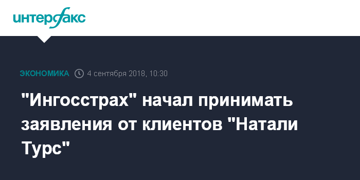 Москва. 4 сентября. INTERFAX.RU - Страховая компания "Ингосстрах" начала принимать заявления от пострадавших клиентов туроператора "Натали Турс", сообщает во вторник пресс-служба компании.