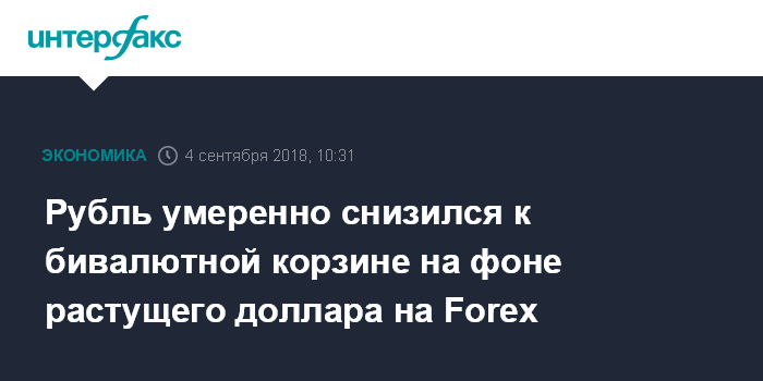 Рубль умеренно снизился к бивалютной корзине на фоне растущего доллара на Forex