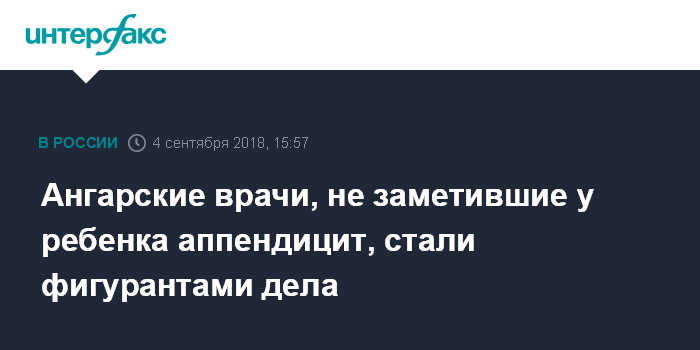 Ангарские врачи, не заметившие у ребенка аппендицит, стали фигурантами дела