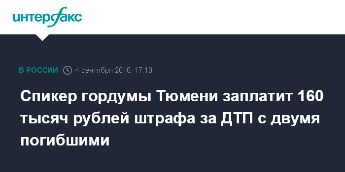 Спикер гордумы Тюмени заплатит 160 тысяч рублей штрафа за ДТП с двумя погибшими