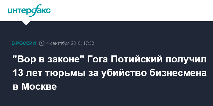 Москва. 4 сентября. INTERFAX.RU - Гражданин Грузии Георгий Гугушвили, известный также как "вор в законе" Гога Потийский, осужден в Москве на 13 лет тюрьмы особого режима за убийство столичного предпринимателя пятилетней давности.