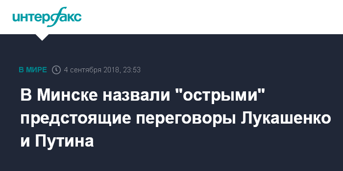 Как сообщалось, пресс-служба белорусского президента анонсировала встречу двух президентов с участием премьер-министров и вице-премьеров. Планируется, что встреча состоится 21 сентября на территории РФ. Лукашенко сообщил об очередной встрече с Путиным в расширенном составе после двусторонних переговоров в Сочи 18 августа.