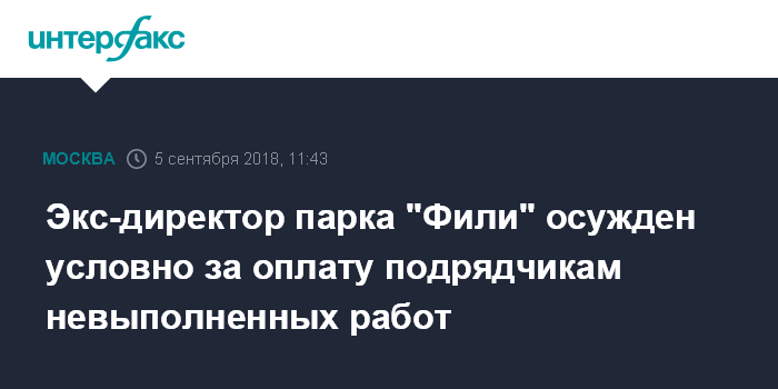 Экс-директор парка "Фили" осужден условно за оплату подрядчикам невыполненных работ
