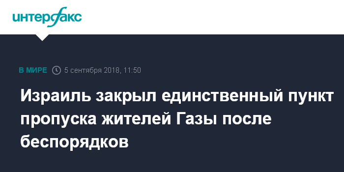 Москва. 5 сентября. INTERFAX.RU - Израиль в среду вновь закрыл КПП "Эрез", единственный на административной границе с сектором Газа, через который жители Газы могут проходить на израильскую территорию, сообщила армия обороны Израиля.