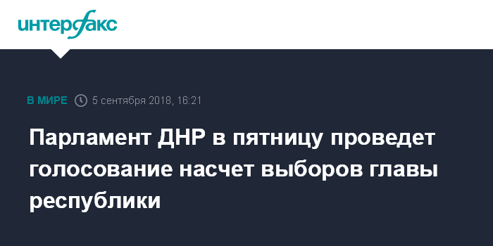 Парламент ДНР в пятницу проведет голосование насчет выборов главы республики