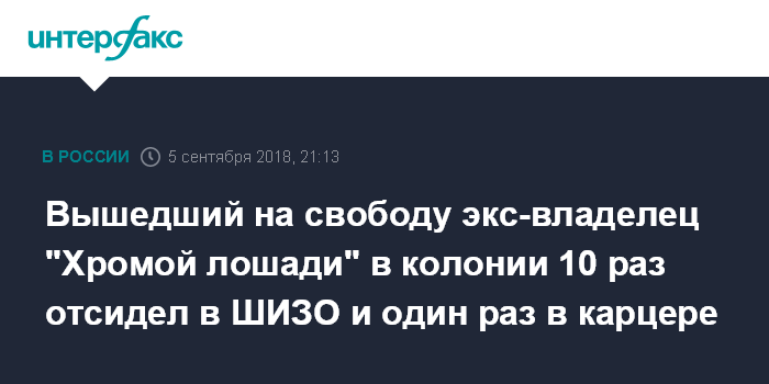 Вышедший на свободу экс-владелец "Хромой лошади" в колонии 10 раз отсидел в ШИЗО и один раз в карцере