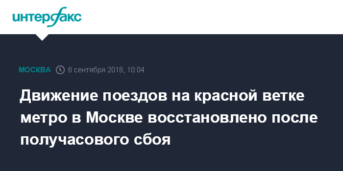 Движение поездов на красной ветке метро в Москве восстановлено после получасового сбоя
